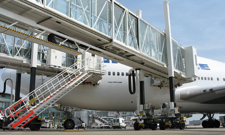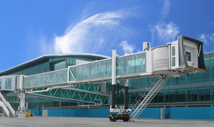 A380登機(jī)橋二層U1超高艙門而設(shè)計(jì)的登機(jī)橋,采用了行業(yè)內(nèi)首創(chuàng)的四輪驅(qū)動(dòng)行走機(jī)構(gòu)及其控制系統(tǒng)。